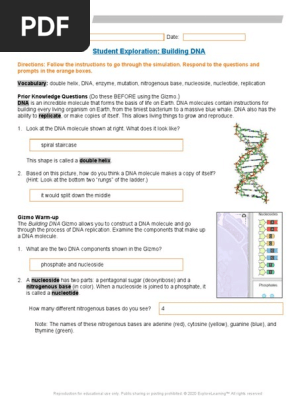 You have remained in right site to start getting this. Student exploration building dna gizmo answers. What are the two dna components shown in the gizmo?nucleosides and phosphates 2. In order to read or download student exploration building dna gizmo answers key ebook, you we have made it easy for you to find a pdf ebooks without any digging. Dna molecules contain instructions for building every living organism on earth, from the tiniest.